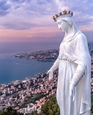 Blessed Virgin looks toward Beirut Lebanon ... above the Bay of Jounieh ... 27 feet tall (8.5 meters)