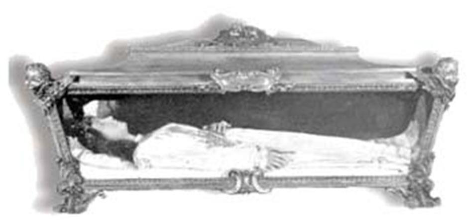relic was placed in a coffin of gold and glass and can be viewed in the formerly Catholic Chapel of Saint Bernadette in Nevers (France) --